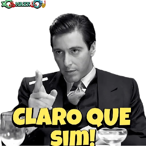 Homem de terno, com expressão séria, apontando o dedo indicador para algo. Ele está sentado à mesa com dois copos de bebida na frente. Sobreposto à imagem, o texto 'CLARO QUE SIM!' em letras grandes e amarelas.