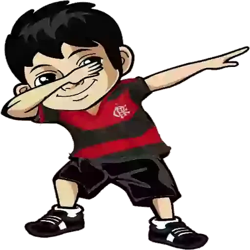 Menino de cabelo preto fazendo careta, com a mão no rosto e o braço estendido, vestindo uma camisa de futebol vermelha e preta.