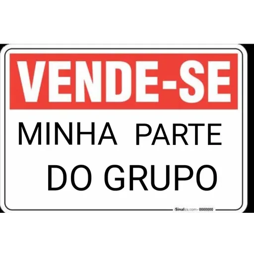 Placa com texto 'VENDE-SE' em vermelho e 'MINHA PARTE DO GRUPO' em preto.