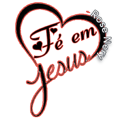 Um coração vermelho com a frase 'Fé em Jesus' escrita em cursivo, com pequenos corações pretos.