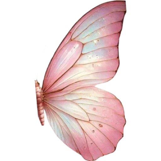 Asa de borboleta rosa com veias e detalhes delicados, fundo transparente.