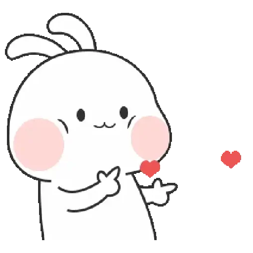 Um desenho de um personagem de orelhas de coelho fazendo um beijo com um coração vermelho saindo de sua mão e outro flutuando perto.