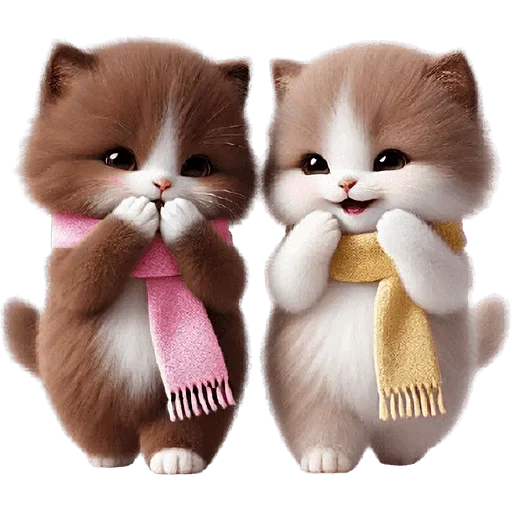 Dois gatinhos fofos com cachecóis rosa e amarelo, fazendo um gesto de surpresa ou choque.
