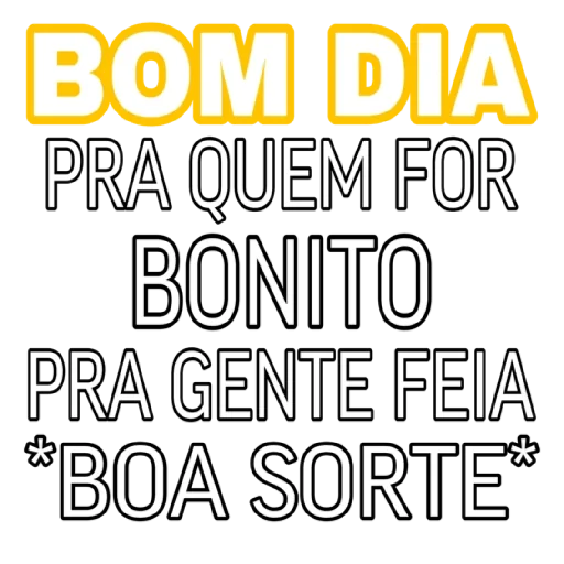Um sticker com o texto 'BOM DIA PRA QUEM FOR BONITO PRA GENTE FEIA *BOA SORTE*' em letras grandes e coloridas.