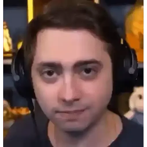 Um homem com headphones e uma expressão facial neutra, parecendo estar em frente a uma câmera.