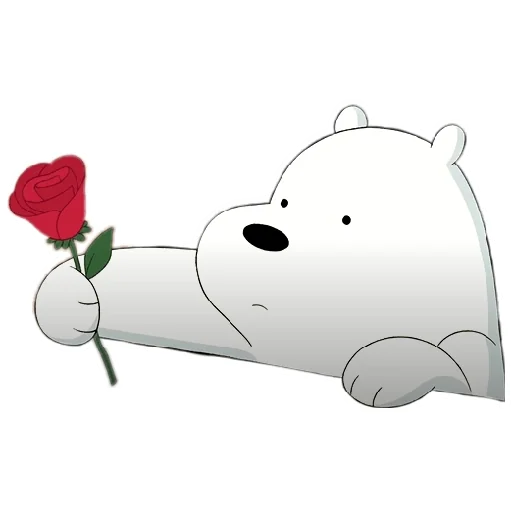 Um urso polar de desenho animado estendido, oferecendo uma rosa vermelha.