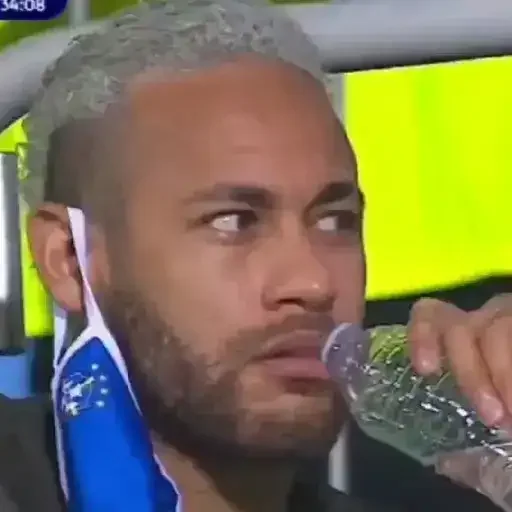 Um homem com cabelo grisalho bebe de uma garrafa de água, com uma toalha azul pendurada no pescoço.