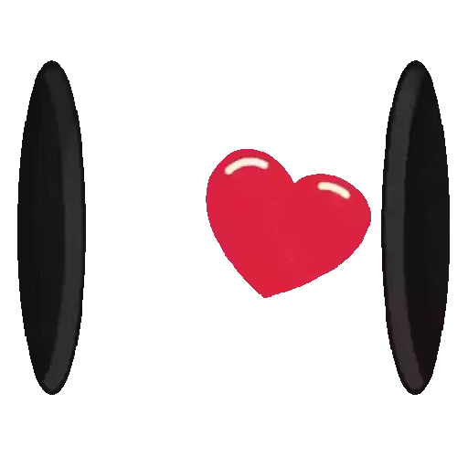 Um coração vermelho brilhante entre dois buracos pretos ovais.