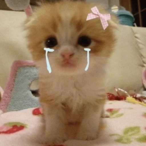 Gatinho fofo com laço rosa no cabelo e óculos de sol. O gato tem pelagem laranja e branca.