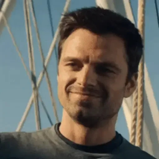 Homem com sorriso leve e olhar suave, usando uma camiseta cinza, com cordas ao fundo.