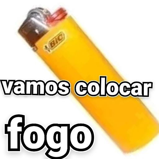Um isqueiro amarelo com a frase 'vamos colocar fogo' sobreposto.