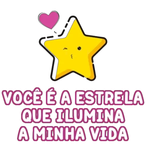 Uma estrela amarela com um rosto feliz e um coração rosa saindo de sua cabeça, com o texto 'VOCÊ É A ESTRELA QUE ILUMINA A MINHA VIDA' em letras rosa.
