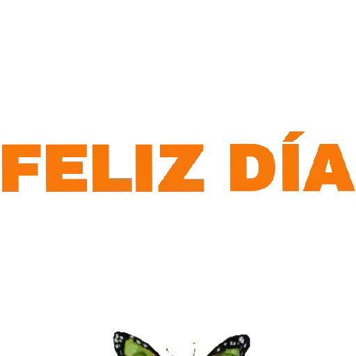 Um desenho com as palavras 'FELIZ DÍA' em laranja e uma borboleta verde abaixo.