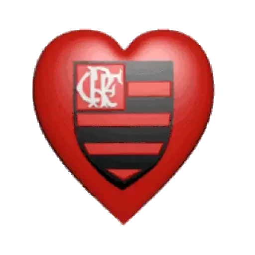 Coração vermelho com escudo de futebol em vermelho e preto, com as letras 'CRF' no canto superior esquerdo.
