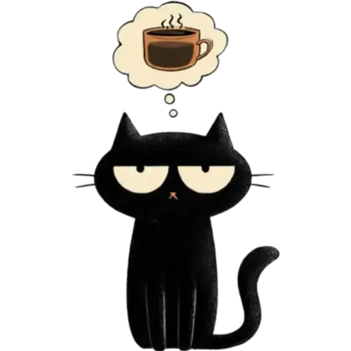 Um gato preto de olhos grandes e arregalados com uma expressão surpresa ou curiosa, desenhado em estilo cartoon.