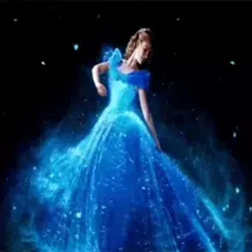 Mulher loira em vestido branco sentada em um ambiente com iluminação azul e linhas de luz.