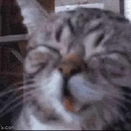 Gato com olhos arregalados e expressão surpresa, focinho branco e marrom.