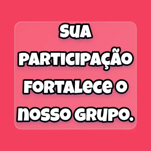 Um texto em branco com sombra preta sobre fundo rosa, que diz 'SUA PARTICIPAÇÃO FORTALECE O nosso GRUPO.'