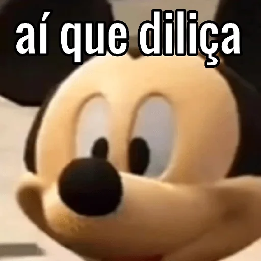 Mickey Mouse com expressão surpresa e preocupada, segurando um controle de videogame, com texto 'Tô jogando agora não…