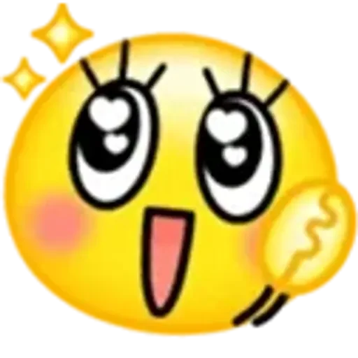 Um emoji amarelo com olhos grandes e coração, boca aberta e bochechas rosadas, com estrelas brilhantes ao lado.