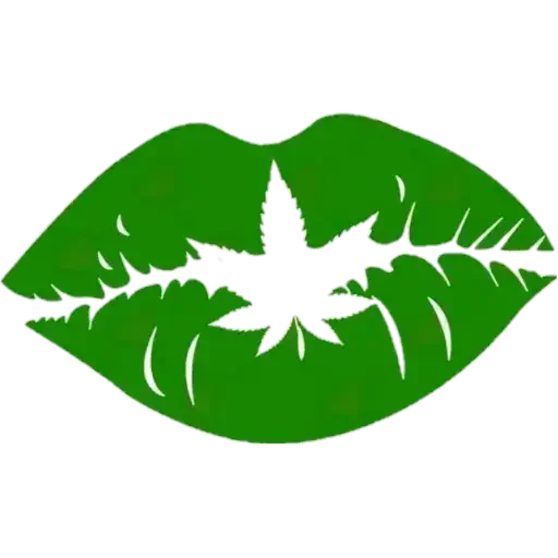 Lábios verdes com uma folha branca no meio, semelhante a uma folha de maconha.