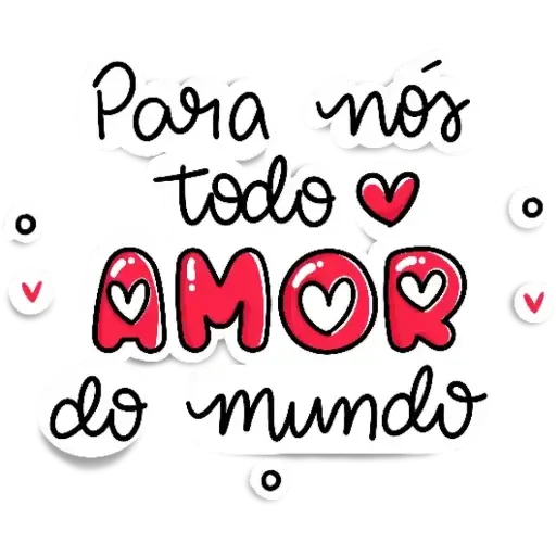 Uma figurinha com a frase 'Para nós todo AMOR do mundo' em letras coloridas e cursivas, com corações vermelhos e brancos.