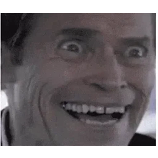 Rosto de homem com expressão de surpresa e dentes separados, olhos arregalados.