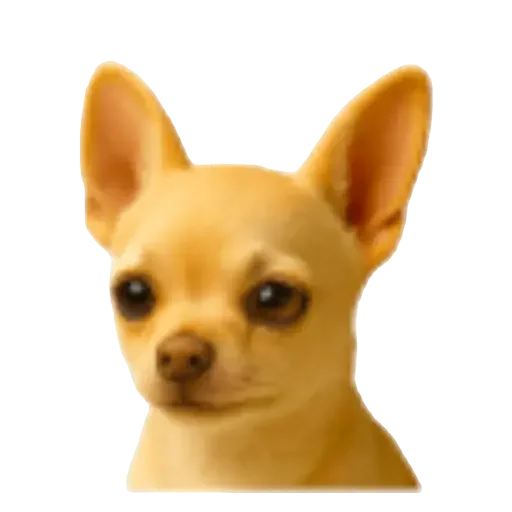 Cabeça de um cachorro Chihuahua amarelo com orelhas grandes e expressão facial séria.