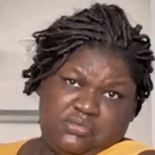 Rosto de uma mulher negra com expressão facial séria e cabelos trançados, vestindo uma blusa amarela.