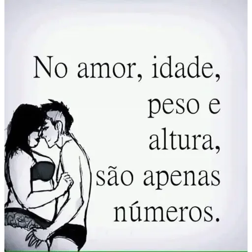 Um casal abraçando, com texto "No amor, idade, peso e altura, são apenas números."