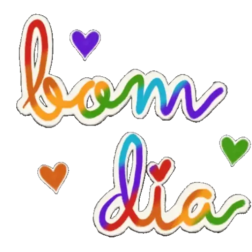 Um desenho colorido com a frase 'bom dia' em letras cursivas e corações coloridos ao redor.