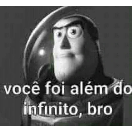 Personagem de filme em preto e branco com expressão surpresa, usando um capacete espacial. Sobreposto com o texto 'você foi além do infinito, bro'.