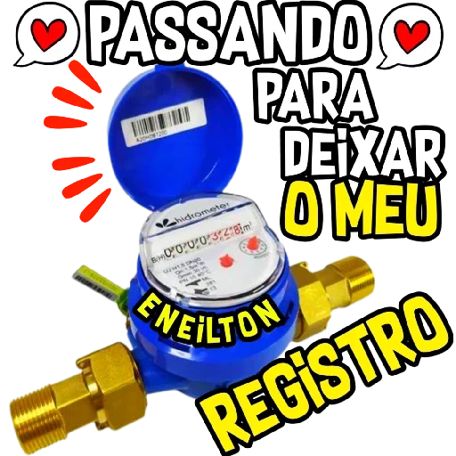 Um registro de água azul com texto 'ENEILTON' e a frase 'PASSANDO PARA DEIXAR O MEU REGISTRO' em destaque. O fundo é branco com elementos de fala e raios vermelhos.