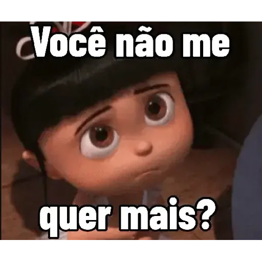 Menina de olhos arregalados e expressão surpresa ou magoada, com texto 'Você não me quer mais?'