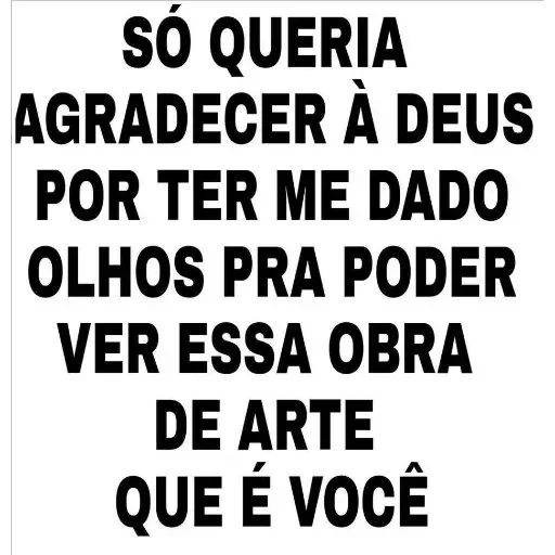 Um texto em preto sobre fundo branco que diz 'SÓ QUERIA AGRADECER À DEUS POR TER ME DADO OLHOS PRA PODER VER ESSA OBRA DE ARTE QUE É VOCÊ'.