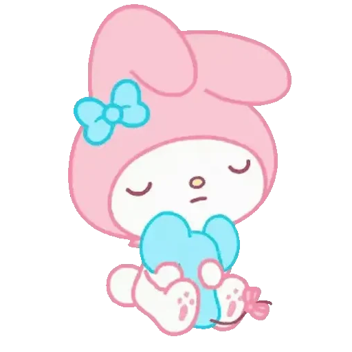 Um personagem de desenho animado fofinho, com orelhas de coelho rosa e um laço, segurando um bolo de aniversário com…