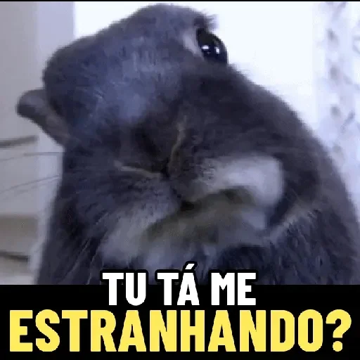Um rato cinza com expressão curiosa e a frase 'TU TÁ ME ESTRANHANDO?' em texto branco e amarelo sobre um fundo preto.
