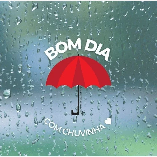 Um guarda-chuva vermelho com gotas de chuva ao fundo e o texto 'BOM DIA COM CHUVINHA'