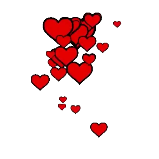 Coração vermelho, vários corações vermelhos de diferentes tamanhos saindo de um aglomerado, fundo branco.