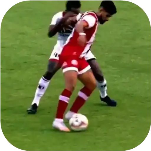 Dois jogadores de futebol, um de branco e o outro de vermelho, disputando a posse de bola em um campo de futebol.