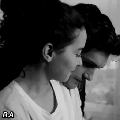 Um casal de jovens olhando para baixo, lado a lado, em preto e branco. A mulher está usando uma blusa branca. Há um pequeno texto 'RA' no canto inferior esquerdo.