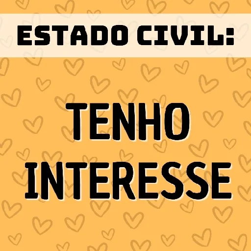 Um fundo laranja com corações pequenos e um texto em preto que diz 'ESTADO CIVIL: TENHO INTERESSE'.