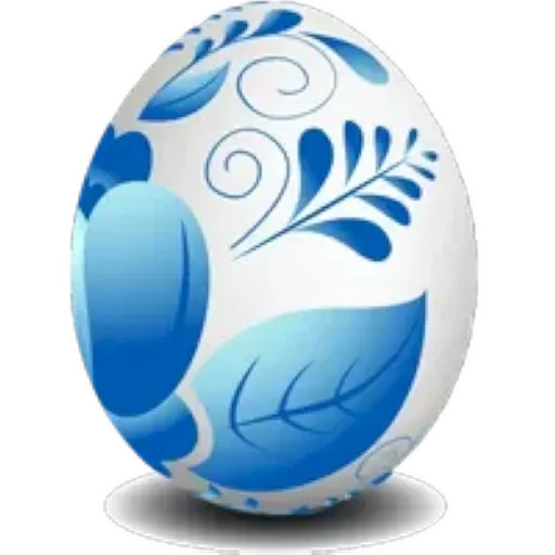 Um ovo branco decorado com folhas e desenhos em tons de azul.