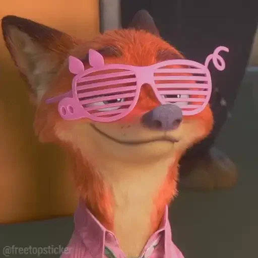 Raposa de óculos de sol rosa com expressão relaxada.