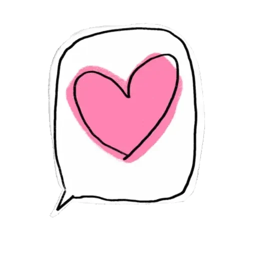 Um coração rosa dentro de uma bolha de fala desenhada com linhas pretas.