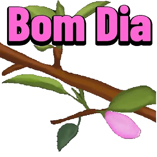 Um ramo de árvore com folhas verdes e uma flor rosa, com o texto 'Bom Dia' em letras rosa.
