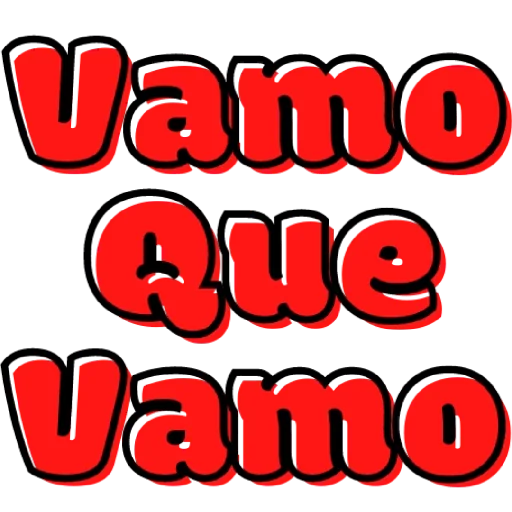 Letras grandes e vermelhas com contorno preto e sombra vermelha que formam a frase 'Vamo Que Vamo'.