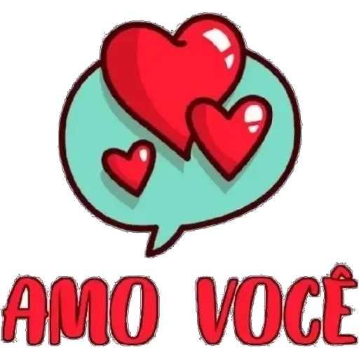 Três corações vermelhos em um balão de fala verde, com o texto 'AMO VOCÊ' em vermelho abaixo.