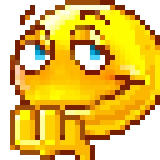 Um emoji amarelo pixelado com expressão pensativa, mão no queixo e olhar para o lado.