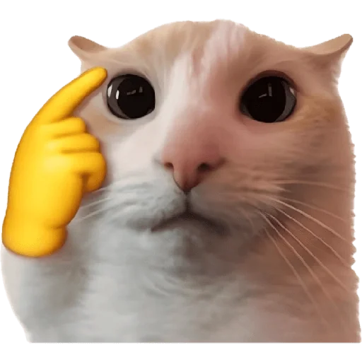 Gato com expressão pensativa, mão amarela no rosto, parecendo questionar ou refletir.